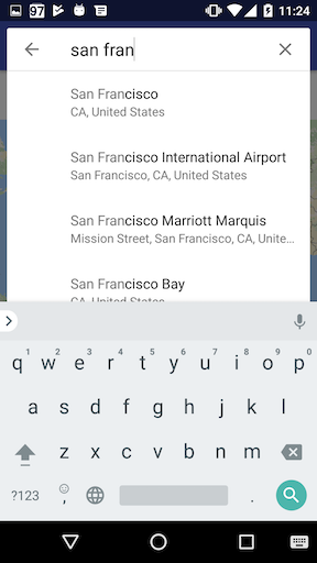 내 앱의 구글 맵이 보이는 부분에서 장소를 검색할 수 있는 검색 창을 띄우고 싶다.