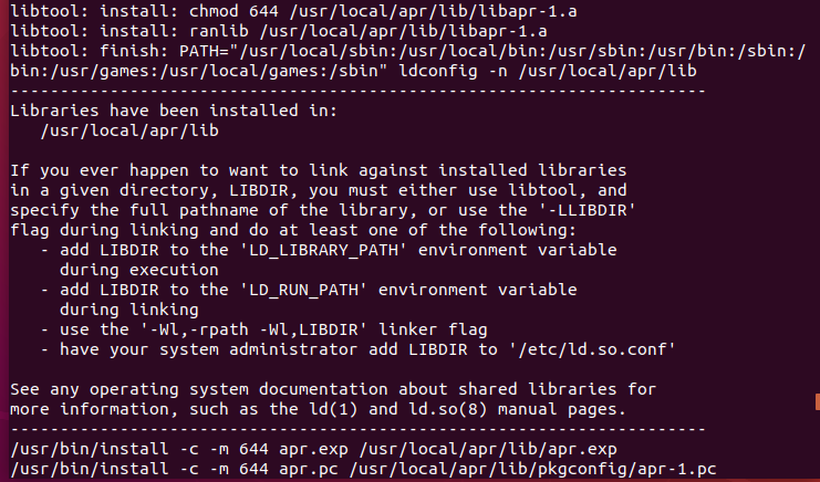 아래의 명령어는 apr 의 설치파일을 만들고, 설치하는 것이라고 생각할 수 있다.