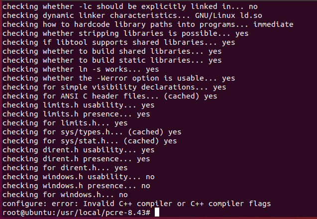 $ ./configure --prefix=/usr/local/pcre