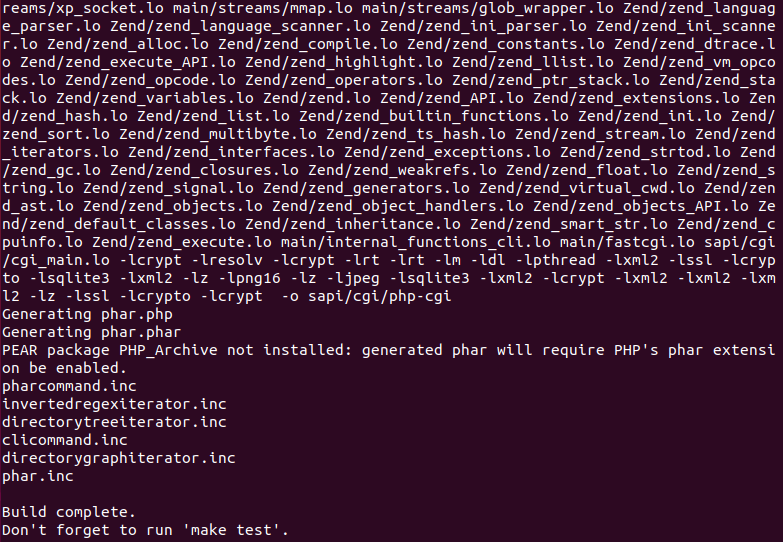 make 가 완료되면 아래와 같이 Build complete 라는 메시지가 출력된다.