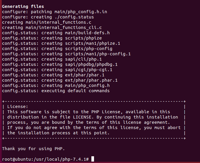 `configure' configures PHP 7.4.1 to adapt to many kinds of systems.