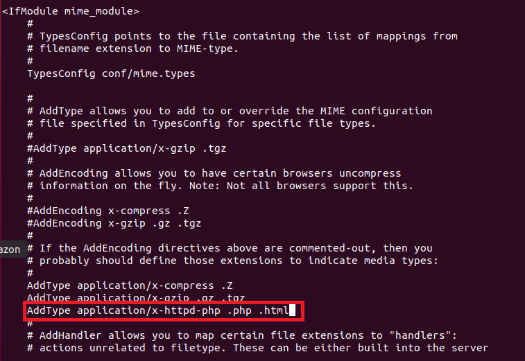 아파치 설정파일을 vi 편집기로 열어 mime_module 에 AddType 을 해준다.