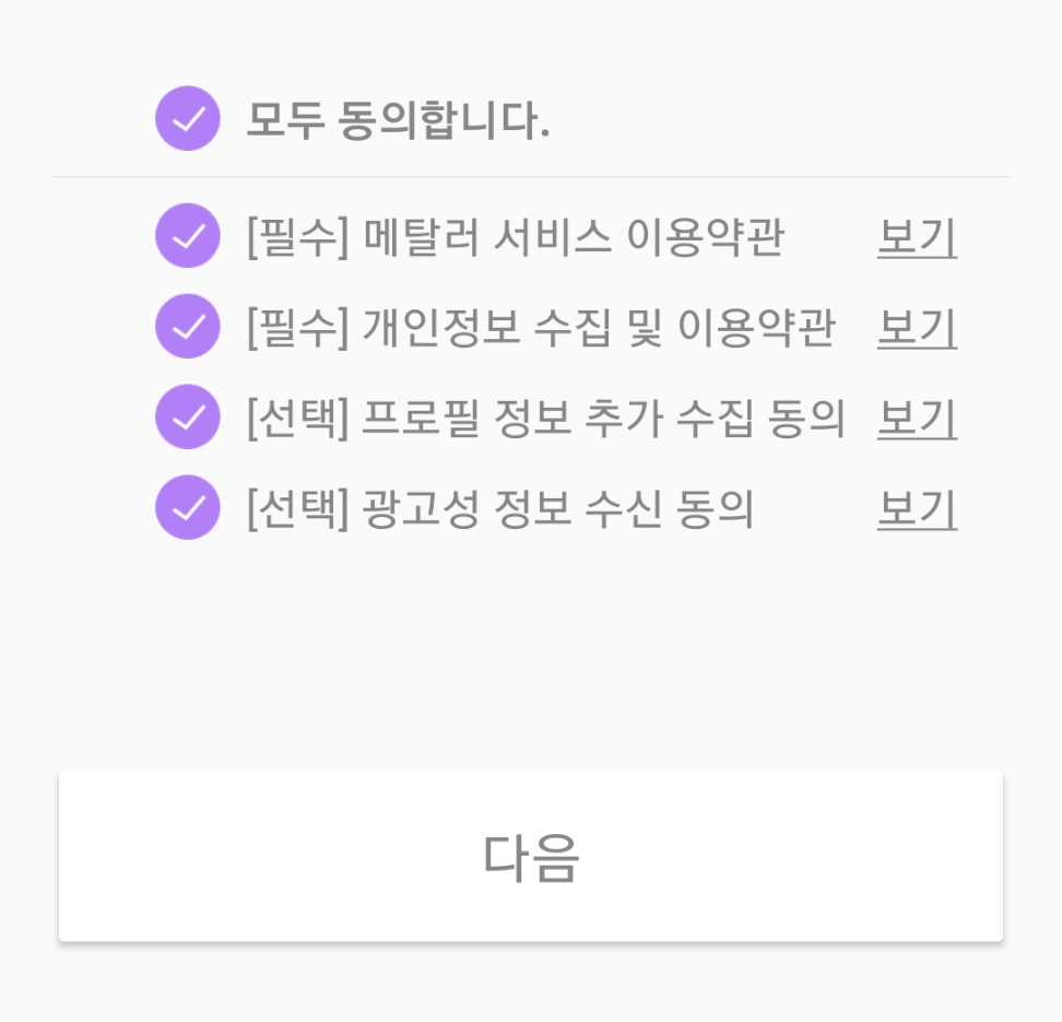 현재 진행중인 프로젝트의 약관 동의 화면에서