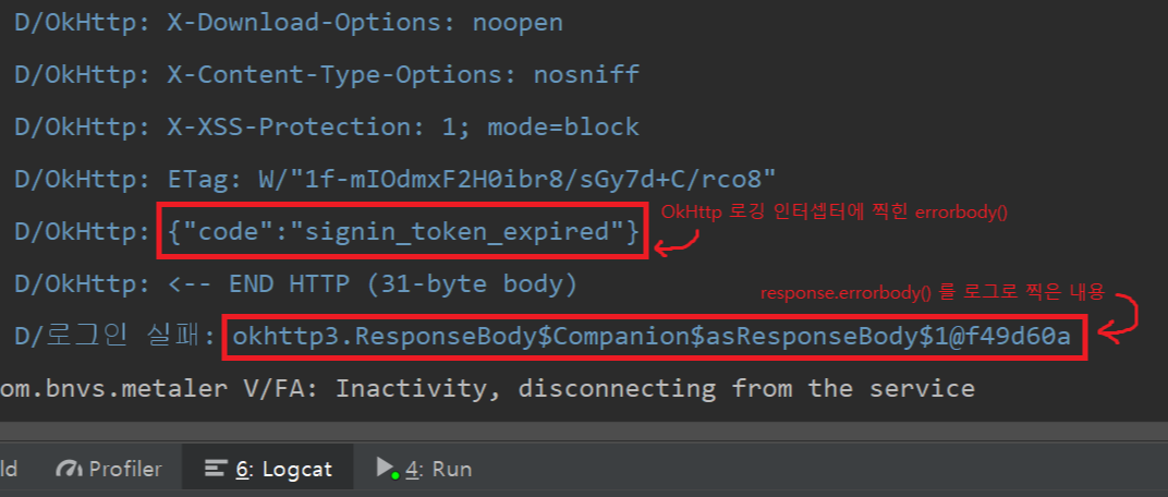 okhttp 로깅 인터셉터에서는 분명히 제대로된 에러코드가 있는데