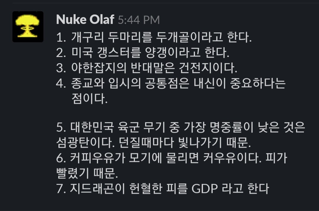 나는 아주 오래전부터 이런 실없는 아재개그를 참 좋아했다. 그래서 어디선가 이런 신박하고 기똥찬 아재개그를 들으면,어딘가에 적어놓거나 외우고 다니기도 했다. 그런데, 이런 아재개그를 혼자서만 알고 있는 것은 아재개그가 주는 즐거움을 전부 만끽했다고 할 수 없다. 이렇게 모아둔 아재개그들을 친구, 또는 가족들에게 써먹은 다음, 그들의 빵 터진 웃음 소리를 듣거나 멸시어린 눈초리를 받아야지만 (아무래도 후자일 가능성이 높지만) 비로소 아재개그를 온전히 즐겼다고 생각한다. 그런데 나와같이 이렇게 아재개그를 좋아하고, 아재개그를 다른사람과 공유하기를 좋아하는 사람들을 위한 서비스는 없을까?