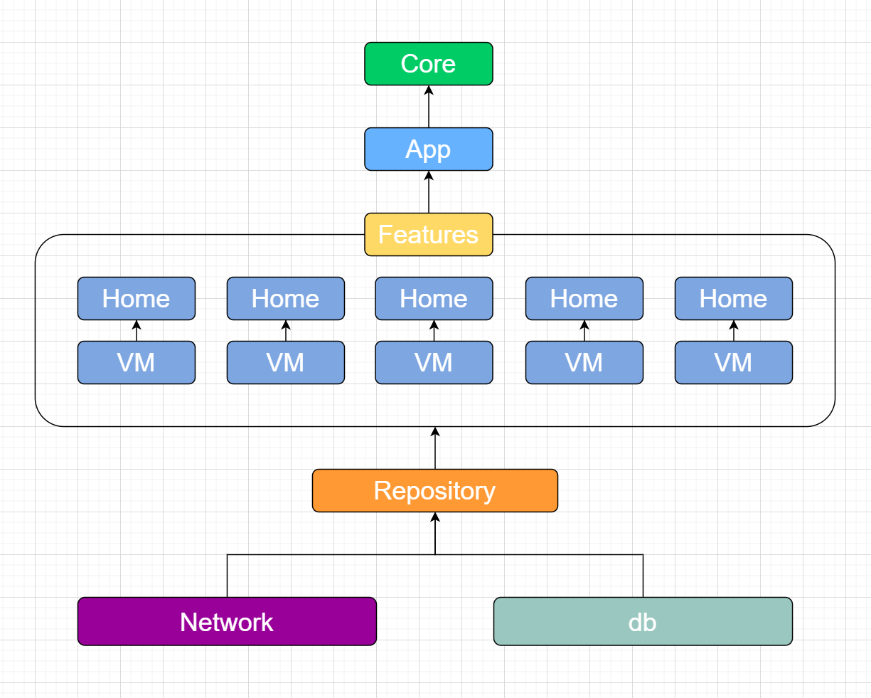 그동안 안드로이드 팀에서는 베이스 앱의 아키텍쳐 정립이 완성되었다. 우리 프로젝트의 아키텍쳐는 다음과 같이 설계되었다. 안드로이드 팀은 이 아키텍쳐를 기반으로 하여 개발을 본격적으로 시작했다.