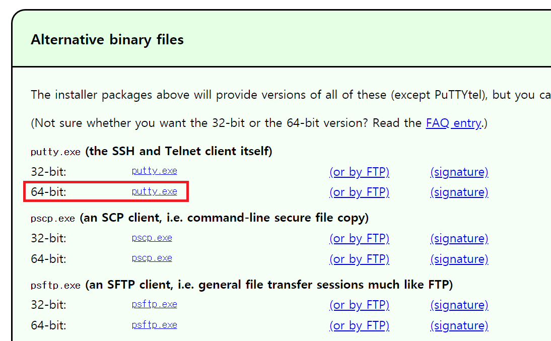다운로드 링크 : www.chiark.greenend.org.uk/~sgtatham/putty/latest.html