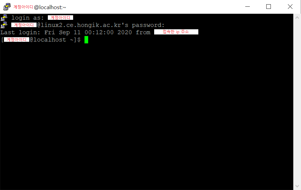 내 사용자 계정의 아이디와 비밀번호를 입력하고 접속한다.