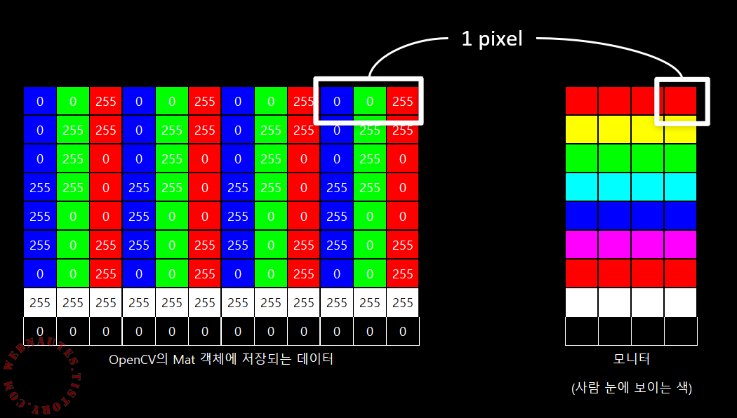 OpenCV 에서는 Mat 객체에 이미지를 숫자로 저장한다.